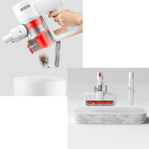 جارو شارژی عصایی شیائومی مدل G20 Lite که با طراحی مدرن و قابلیت های پیشرفته، تجربه نظافت خانه را به سطح جدیدی ارتقا می دهد.این جارو شارژی، با وزن سبک و طراحی ارگونومیک، استفاده از آن را به یک تجربه لذت بخش تبدیل کرده است. این جارو شارژی با رنگ سفید عرضه می شود.بر روی این دسته این جارو دکمه ای قرمز رنگ قرار گرفته که با فشردن آن آشغال های داخل مخزن گرد و غبار که دارای ظرفیت 0.55 لیتر است، به راحتی تخلیه می شوند.این جارو دارای نشانگر بوده که وضعیت شارژ باتری و میزان انرژی باقی مانده را نمایش می دهد که در صورت نیاز، آن را به موقع شارژ کنید. نشانگر قدرت به شما اطمینان می دهد که جارو همیشه برای استفاده آماده است و از قطع شدن ناگهانی جارو در حین کار جلوگیری می کند.علاوه بر این، این جارو به گونه ای طراحی شده است که می توانید آن را به دیوار نصب کنید. جارو شارژی عصایی شیائومی مدل Xiaomi Vacuum Cleaner G20 Lite دارای یک سیستم پیشرفته فیلتراسیون است که به منظور جلوگیری از آلودگی ثانویه و تولید هوای تازه تر طراحی شده است. این سیستم فیلتراسیون دقیق پنج مرحله ای قادر است 99.9٪ از ذرات معلق به اندازه 0.3 میکرو متر را حبس کند. این مراحل عبارتند از:مرحله اولیه فیلتراسیون است که با استفاده از نیروی گریز از مرکز، ذرات بزرگ را جدا می کند.یک صافی فلزی است که ذرات درشت تر را جدا می کند.فیلتر اسفنجی با تراکم بالا که به عنوان یک لایه اضافی عمل می کند تا ذرات ریزتر را حبس کند.جدا کننده به شکل مخروطی است که به جداسازی ذرات باقی مانده کمک می کند.فیلتر با کارایی بالا که قادر است ذرات بسیار ریز تا اندازه 0.3 میکرو متر را حبس کند و از ورود آن ها به هوای بازگشتی جلوگیری می کند.xiaomi vacuum cleaner G20 lite مجهز به فناوری تشخیص گرد و غبار با نور سفید است که به شناسایی کثیفی های پنهان کمک می کند، به این ترتیب اثربخشی تمیزکاری آن بر روی سطوح مختلف بهبود می یابد.جارو دارای یک باتری داخلی با ظرفیت 2200 میلی آمپر ساعت است که این امکان را به شما می دهد برای مدت زمان طولانی تر بدون نگرانی از تمام شدن شارژ، از قدرت مکش پایدار بهره مند شوید. با استفاده از نازل برس دو کاره، جارو تا 45 دقیقه عمر باتری دارد و هنگام استفاده از برس الکتریکی، جارو تا 40 دقیقه عمر باتری دارد.