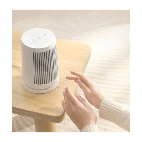 بخاری برقی رومیزی شیائومی مدل Mijia ZMNFJ01YM با طراحی جمع و جور و ظاهری مدرن، قابل استفاده بر روی میز کار، کنار تخت و یا هر مکان دیگر است. روش گرمایش به صورت PTC فراهم شده که گرمایی سریع، ایمن و پایدار را ایجاد می کند. این محصول با بهره وری از سیستم های حفاظتی مختلف، ایمنی در حین استفاده را تضمین خواهد کرد. جنس بدنه از پلاستیک نسور ABS با درجه ایمنی V-0 می باشد که مقاوت لازم در برابر گرما را دارد. مکش هوا از سطح 360 درجه ای زیر دستگاه صورت می گیرد که امکان قرار گرفتن هیتر کنار دیوار را فراهم می کند. وزش هوای گرم را می توانید زاویه دار تنظیم کنید تا حرارت به صورت چرخشی و با زاویه 45 درجه بدمد.بخاری برقی شیائومی ZMNFJ01YM ، در نگاه اول یک بخاری برقی کوچک و رومیزی است که ساختار بدون زاویهاش، قرار گرفتن کنار دیوار را غیرممکن میکند. برخلاف ظاهر غلط اندازش، شما میتوانید بخاری را نزدیک دیوار قرار دهید، چرا که گرما به صورت 360 درجه از زیر دستگاه خارج میشود. در بدنه خارجی، هیچ اثری از فلز نیست. طبق انتظارمان، بدنه از پلاستیک ABS فشرده با تحمل دمای بالا و 7 فرآیند سختگیرانه ساخته شده و به ماژول چرخشی 45 درجه مجهز شده است تا گرما را با اندکی زاویه، به اطراف پرتاب کند. ارتفاع 18 سانتی متری و پهنای 13 سانتی متری، بار دیگر تاکید میکند که با یک بخاری برقی جمع و جور روبرو هستیم که قرار گرفتنش روی میز، فضای زیادی را اشغال نمیکند.سیستم گرمایش بخاری برقی شیائومی ZMNFJ01YM، گرمایش PTC با انتقال حرارت همرفتی است. این بخاری فاقد سیم پیچی درونی بوده و از المنت سرامیکی برای گرمایش بهره میبرد. در مورد این سیستم میدانیم که راندمان تبادل حرارت بالا داشته و صرفه جویی در مصرف برق، ویژگی بارز آن محسوب میشود. PTC گرمایش یکدستی را فراهم میکند، به همین دلیل در مقایسه با سیستم های سنتی با مصرف برق بالا، محبوبیت پیدا کرده است. در این بخاری خبری از تابش خیره کننده نیست و در قیاس با ابعاد محصول، منتظر توان گرمایشی خوبی باشید.
