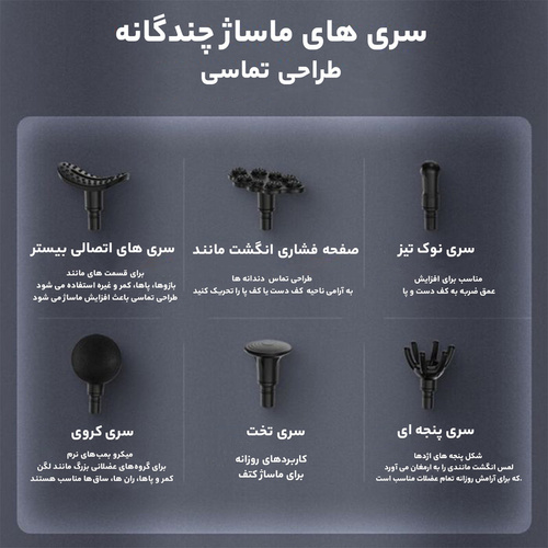 سایر توضیحات2 حالت و 7 سطح سرعت | 6 سری ماساژ مختلف برای تمام نقاط بدن | باتری 1500mAh و 120 دقیقه شارژ دهی | دامنه جابه جایی سری 8 میلیمتر